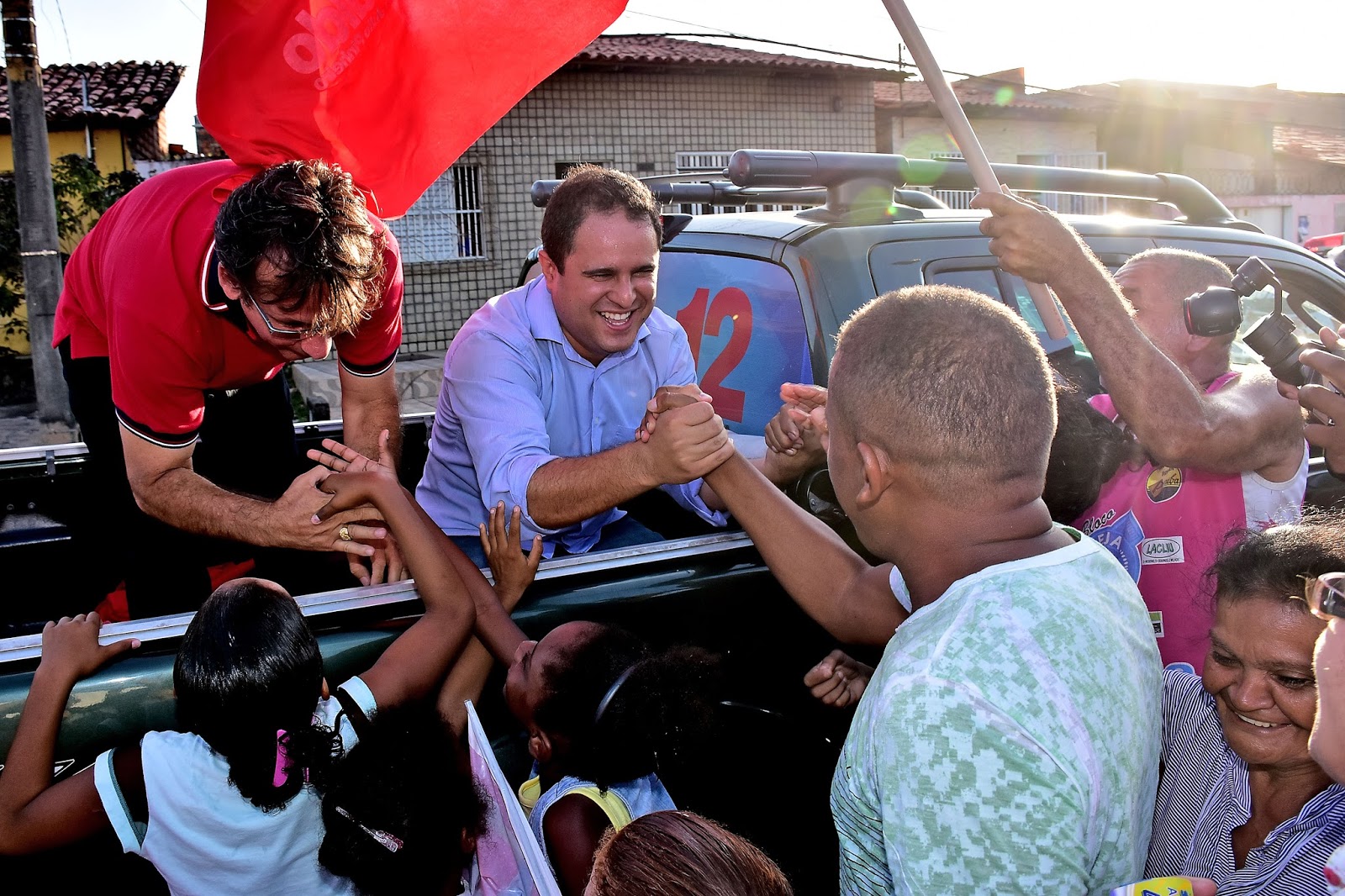 reeleição do PDT, Edivaldo, estava em cima da carroceria de uma pick-up,