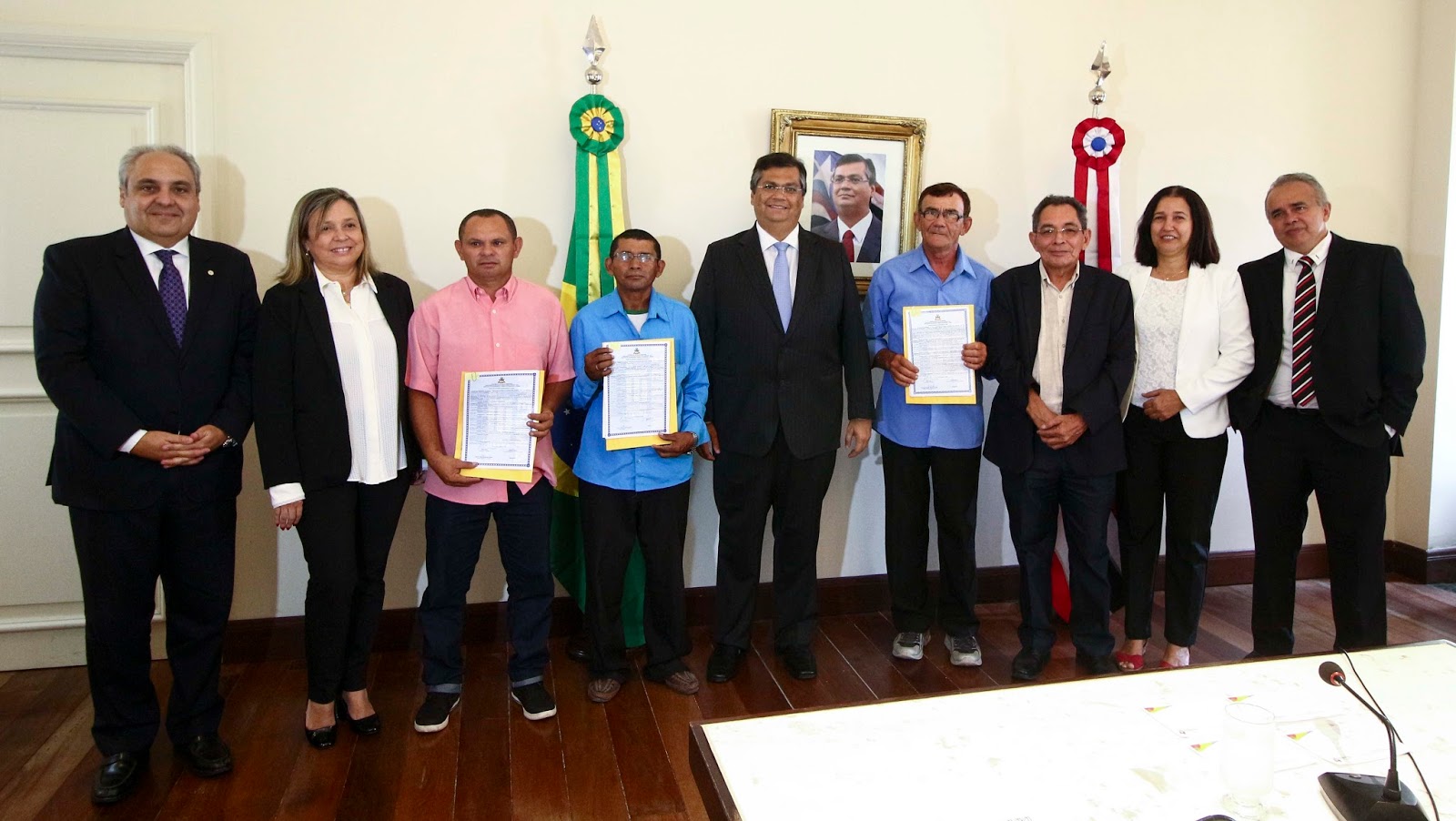 Flávio Dino e a presidente do Iterma, Margareth Teixeira, os secretários